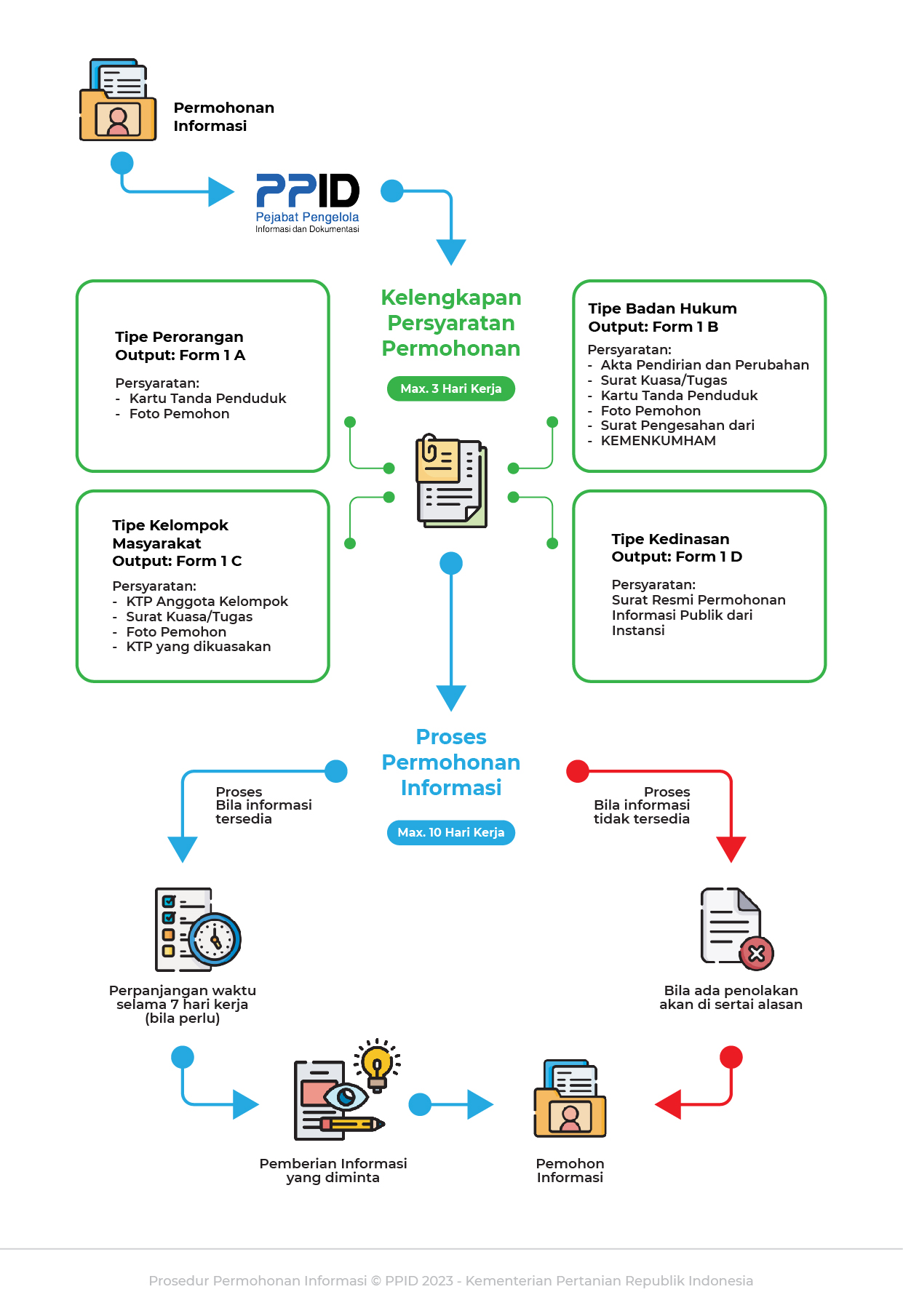 Prosedur Pelayanan Informasi Publik lingkup Badan Perakitan dan Modernisasi Pertanian disusun berdasarkan Peraturan Menteri Pertanian Nomor 32/Permentan/OT.140/5/2011 tentang Pengelolaan dan Pelayanan Informasi Publik di Lingkungan Kementerian Pertanian dan Peraturan Komisi Informasi Republik Indonesia Nomor 1 Tahun 2021 tentang Standar Layanan Informasi Publik.